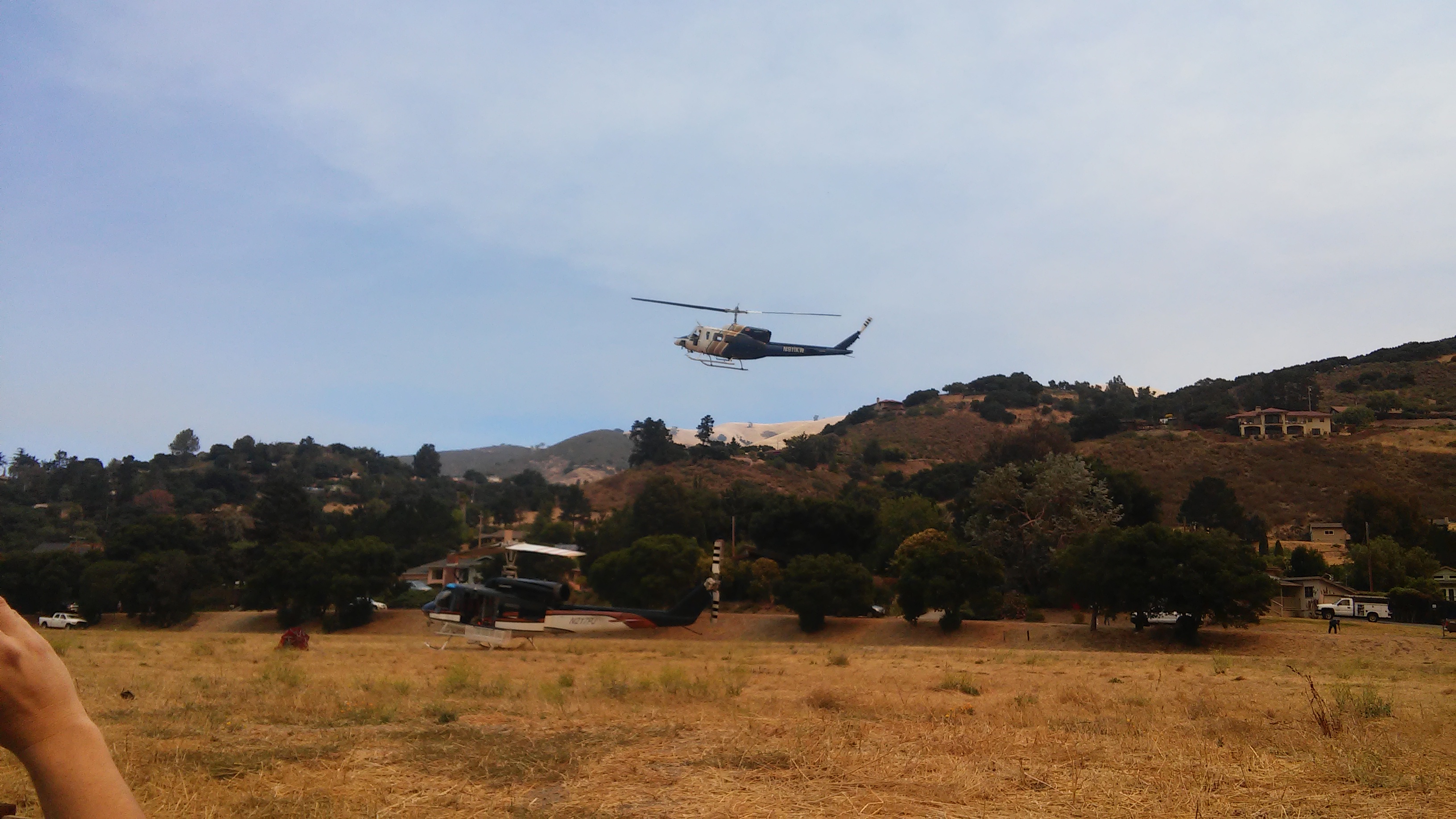 So as I was packing and preparing early this morning around 6 to leave a fire broke out on our property on the south side of garrapata ridge (the fire jumped the ridge by ember). I called calfire right away and then an hour later to report. After about 3-4 hours after the fire start a spotter plane and helicopter arrived. The helicopter dumped water on the upper portion of the fire that was making a run for the ridge. The fire was still spreading down towards our house, as well as east and west along the ridge. The canyon was empty heading out except for a cal fire personal who said he was going to take a look at it to see if he could get crew in. The fire is easily defensible, I have a fire hydrant right at it’s base, a trail leading to the southern flank and an access road that was cleared down below. The fire is spreading but not at an extremely rapid pace, so I will cross my fingers it can be put out. Hope everyone got out safely and that our firefighters can put it out safely.”